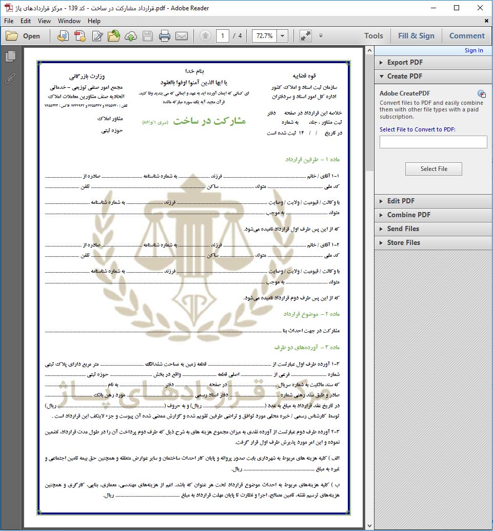ویژگی‌های فایل قرارداد مشارکت در ساخت: